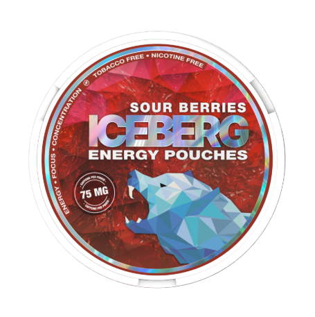 Iceberg Caffeine Pouches Sour Berries 75mg is a variant in the Iceberg series that combines a powerful caffeine boost with a sour and fruity berry flavor.