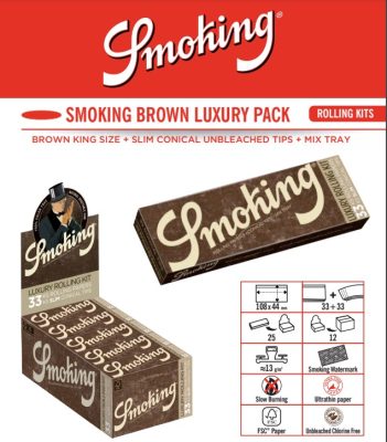 Hver pakke indeholder rullepapir, filtertips og ofte en lille bakke eller opbevaringsløsning, så alt er samlet ét sted.